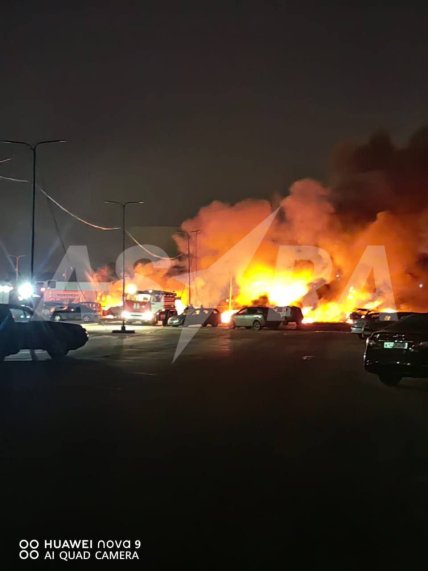 Велика пожежа почалася на парковці в Домодєдові після атаки безпілотників. Попередньо горять близько 20 автомобілів.