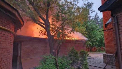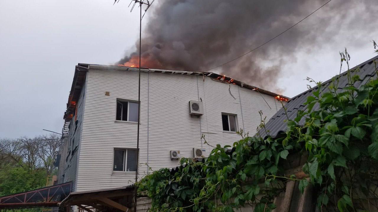 - Київський район. Внаслідок удару БпЛА горить будівля ресторану.