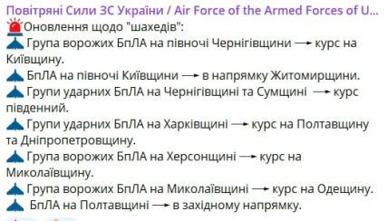 1:00 У Павлограді чули вибухи, монітори повідомляють про нових безпілотників, які летять на місто.