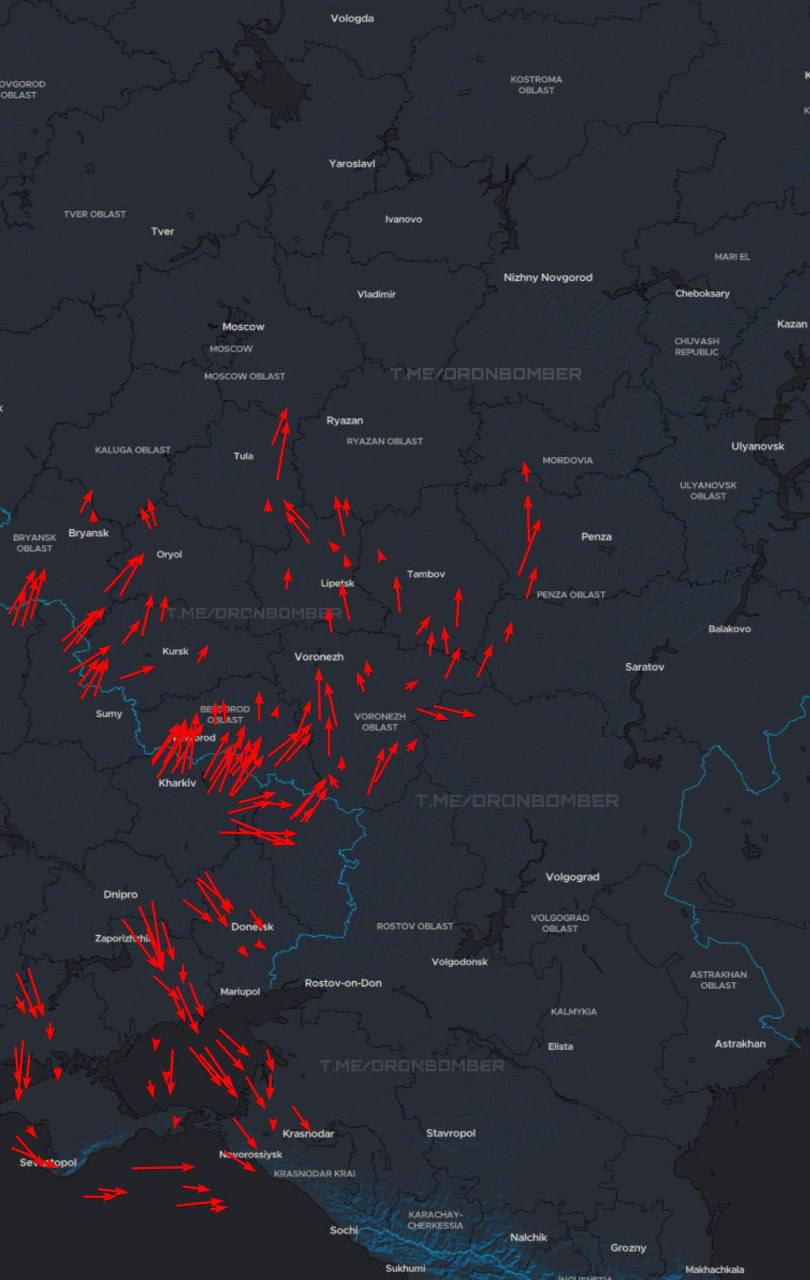 00:00 Моніторингові канали повідомляють, що у росіян розпочався другий раунд з українськими дронами. Згідно з картою приблизного руху, дронів багато і вони летять у різних напрямках.