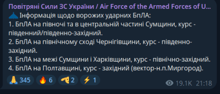 21:20 В повітряному просторі багато ворожих безпілотників.
