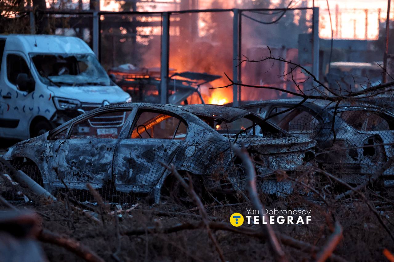 У дворі цієї багатоповерхівки пошкоджена і значна частина автівок. На фото, яке показав Ян Доброносов помітно, як палає трактор.