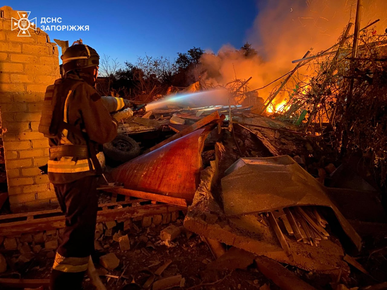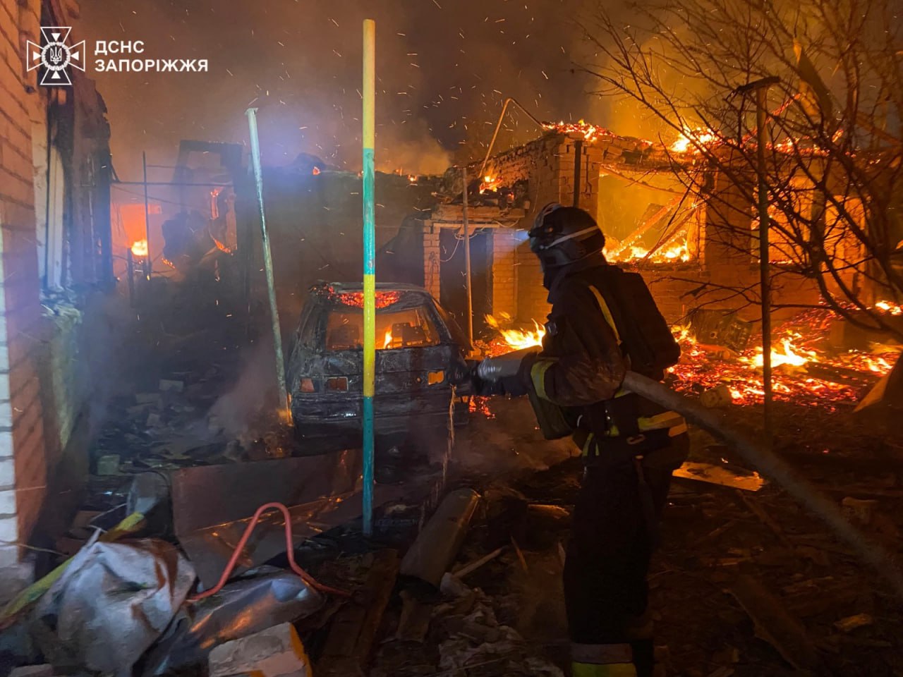 Глава Запорізької ОВА Іван Федоров повідомив, що через ворожу атаку зруйновані приватні будинки, пошкоджені багатоповерхівки та будівлі промислових підприємств. На місцях влучань виникли пожежі.
