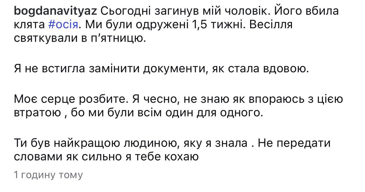23:00 "Ми були всім один для одного": російський удар вбив чоловіка через півтора тижні після власного весілля.