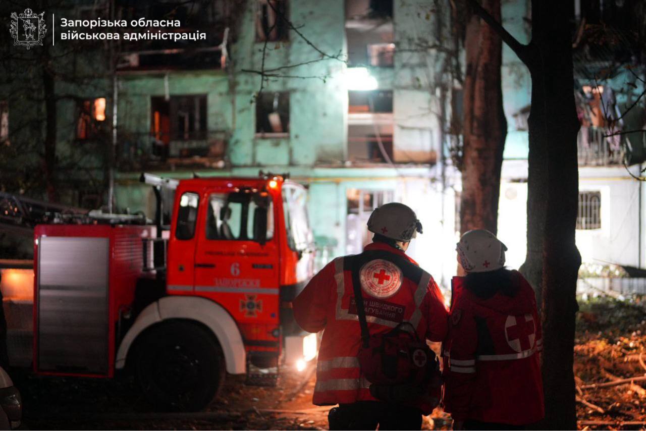 В ніч на середу, 22 жовтня, росіяни завдали масованого удару безпілотниками по місту Запоріжжя. Постраждало 13 людей, серед яких двоє дітей.