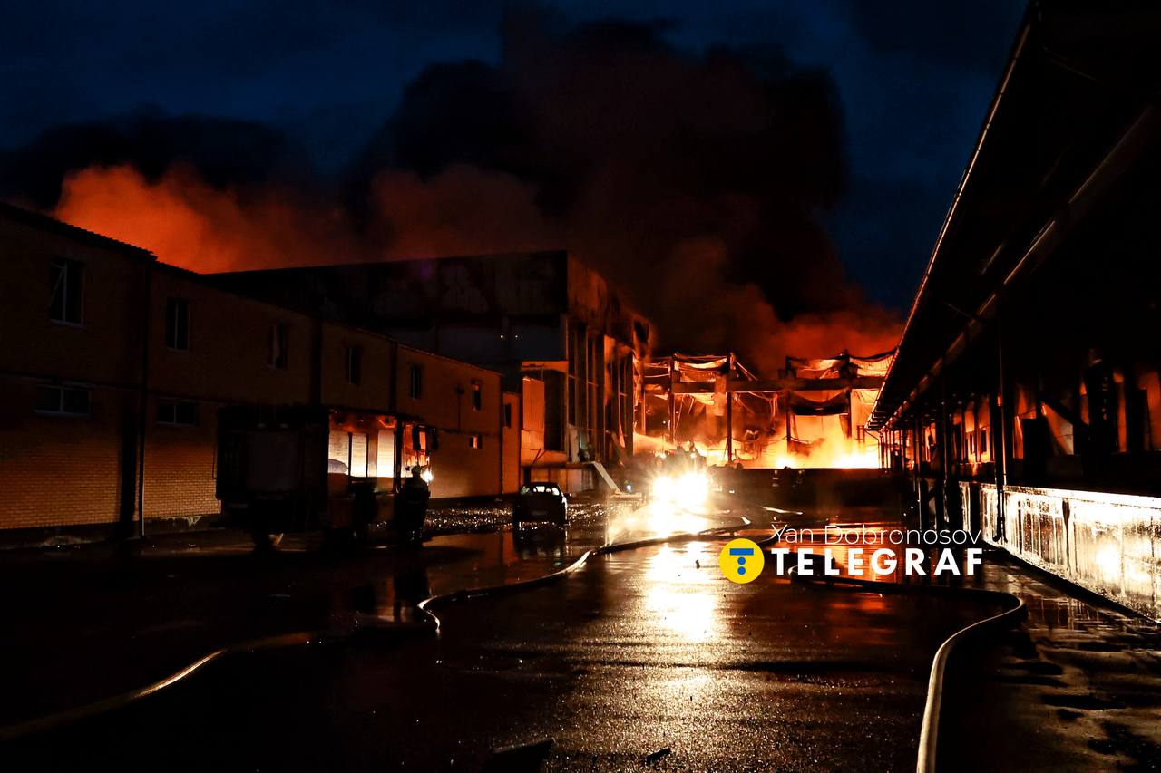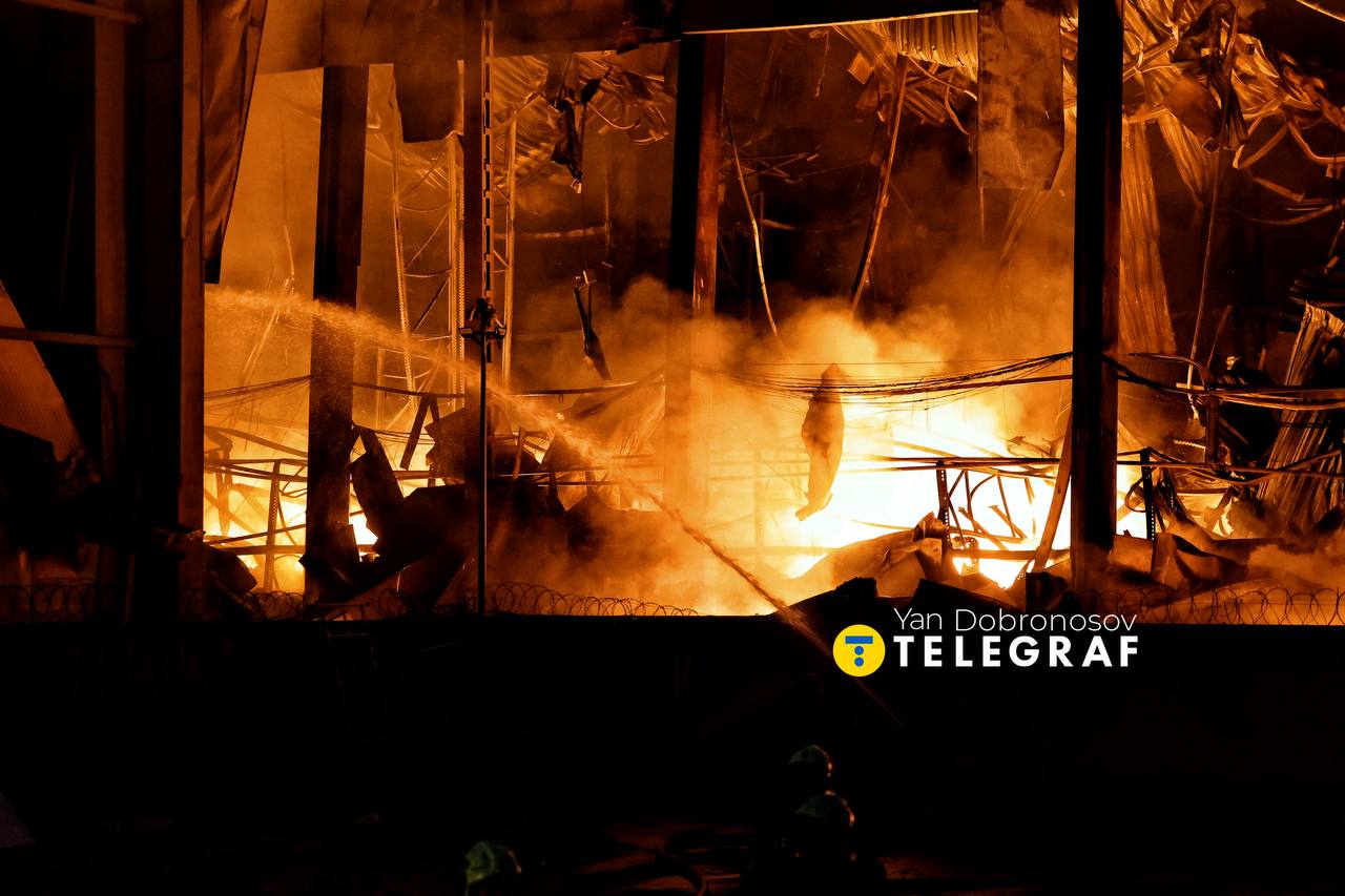 Фотокореспондент "Телеграфа" Ян Доброносов побував на місці влучання у Деснянському районі. Там виникла масштабна пожежа, працюють рятувальники та всі необхідні служби.