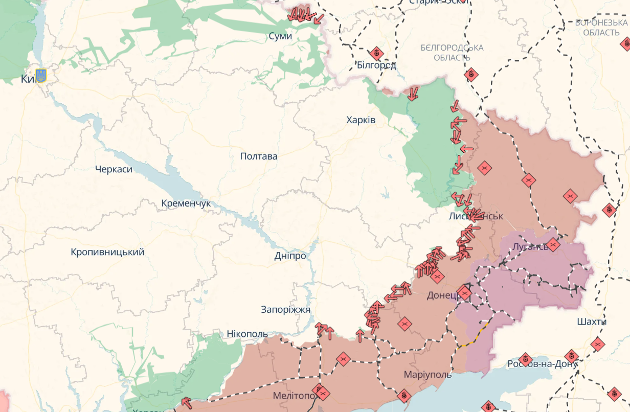 Тим часом карта бойових дій від DeepState станом на початок доби виглядає наступним чином: