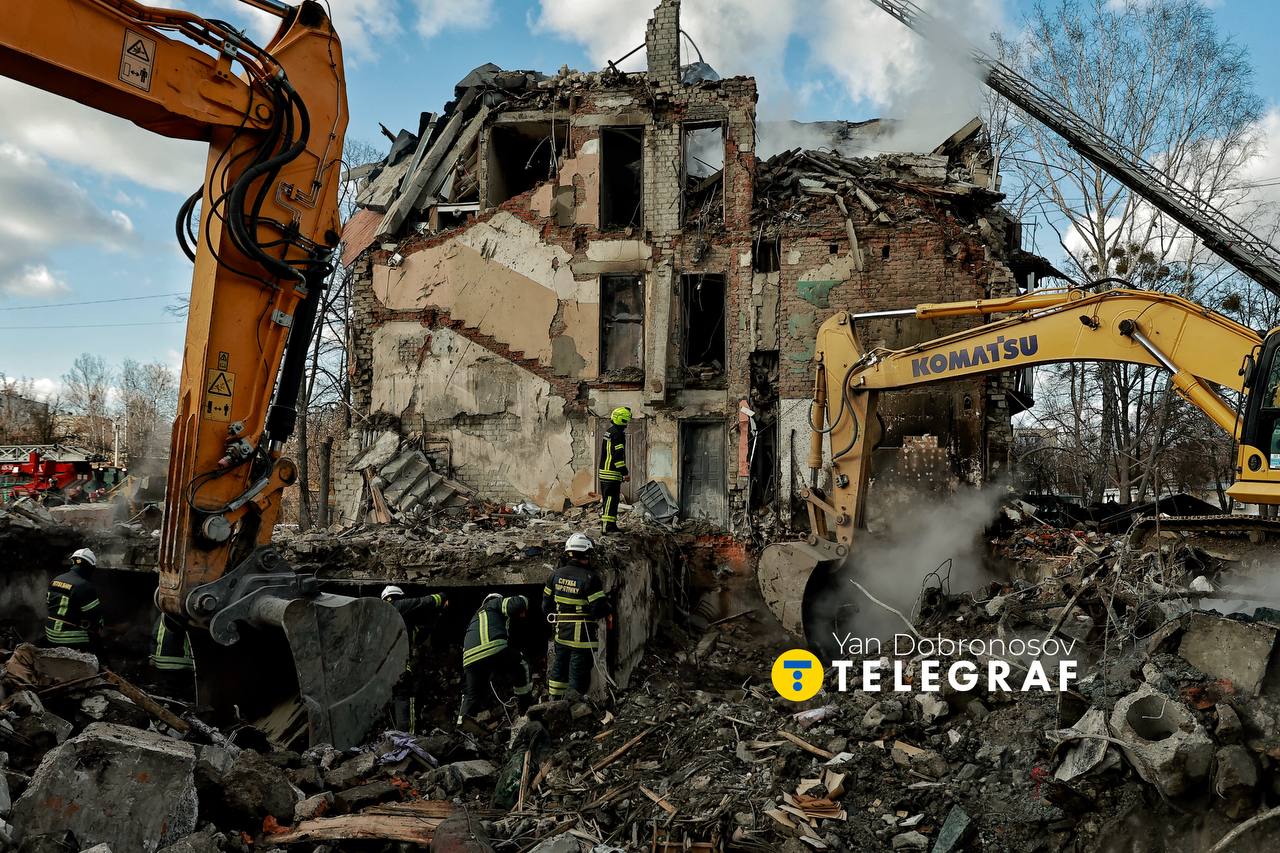 Російська ракета в ніч на 7 березня влучила в багатоповерхівку Харкова. Один з під'їздів будинку з 5 по 1 поверхи завалився. Серед постраждалих та загиблих є діти.
