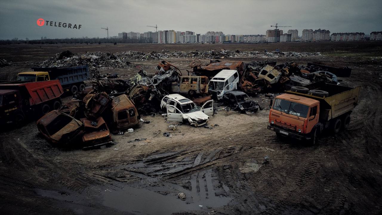 Звалише авто у Бучі. Фото: Ян Доброносов, "Телеграф"