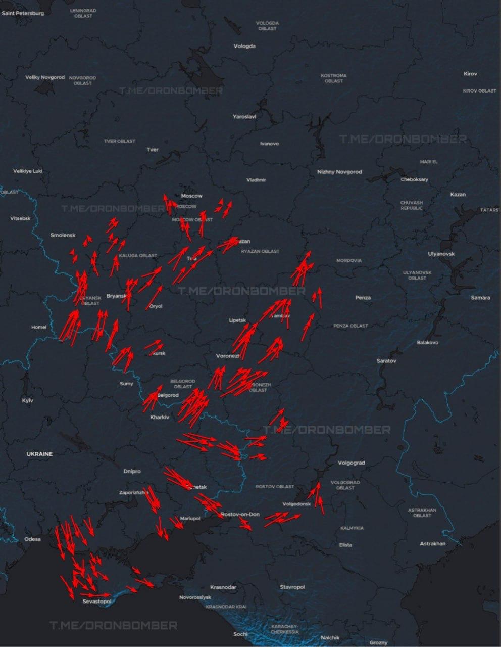 Більше 300 БПЛА летять на Росію. Тим часом у Севастополі, тимчасово окупований Крим, було чутно вибухи.