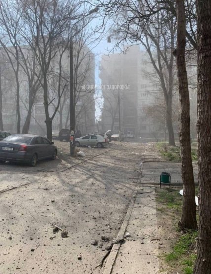 "Запоріжжя. Просто зараз російська ракета влучила в багатоповерховий будинок. Росія зі звірячою жорстокістю обстрілює місто. Влучання по житлових кварталах, де мешкають звичайні люди, діти. Країна-терорист прагне знищити наші міста, нашу державу, наших людей.