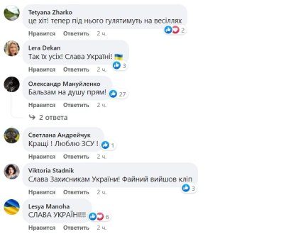 Под видео появились сотни комментариев. Украинцы восхищаются ВСУ и благодарят защитников. Пользователи пишут, что эта песня скоро станет новым хитом.