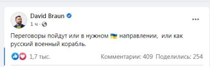 "Переговоры пойдут или в нужном Украине направлении, или как русский военный корабль", — написал он.