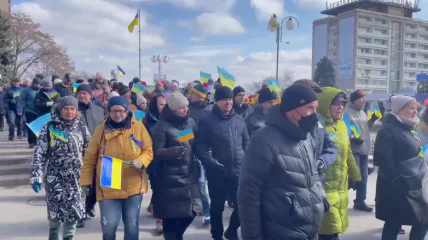 Во временно оккупированном россиянами Мелитополе прошел митинг в поддержку Украины. Мелитопольцы решили показать, что российских оккупантов в городе никто не ждет.