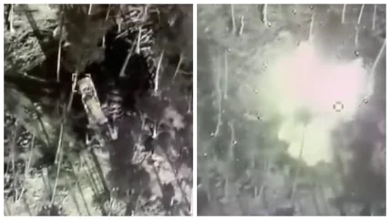 На кадрах украинский "Байрактар" уничтожает российскую реактивную систему залпового огня "Ураган".