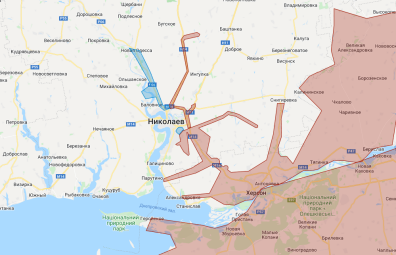 На карте DeepState же показывают, как эффективно ВСУ накануне отогнали россиян из-под Николаева (освобожденные территории выделены голубым).