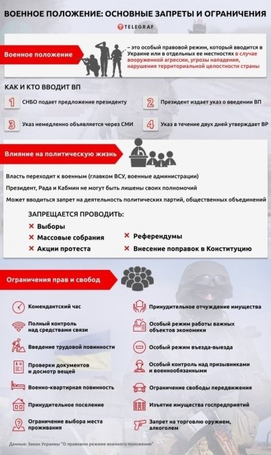 Напомним, что для граждан во время действия военного положения вводятся ряд запретов и ограничений, в частности