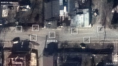 Анализ спутниковых снимков опровергает заявления россии о том, что убийство мирных жителей в Буче, произошло после того, как российские военные покинули город.