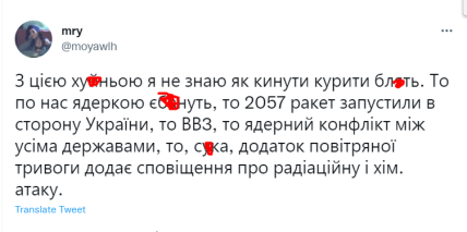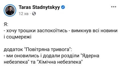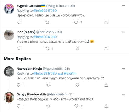 Кое-кто саркастически отмечает, что утро началось с "оптимистических" обновлений и добавляет, что такое развитие событий совсем не провоцирует появление радости, ведь осознание того, какая ракета летит в твою сторону: ядерная или химическая, точно не успокаивает.
