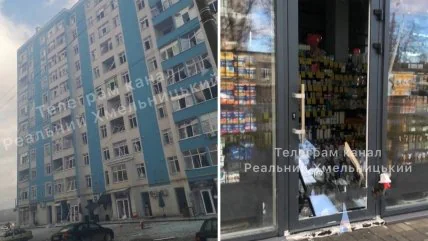 Как сообщил мэр города Александр Симчишин в эфире телемарафона, в Хмельницком из-за российского удара пострадал жилой микрорайон. Повреждены 3 учебных заведения и около 10 многоэтажных жилых домов. В результате взрыва ранены.