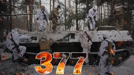 Полномасштабное российское вторжение в Украину продолжается 377 дней. Российские оккупанты продолжают атаковать на Донбассе и горячее всего на Бахмутском направлении и в самом городе-крепости. Власти Украины приняли решение удерживать город и направляют туда дополнительные силы, а постоянные штурмы приводят к тому, что (по данным разведки НАТО) соотношение потерь оккупантов к украинским защитникам составляет примерно пять к одному.