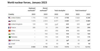 Эти две страны обладают почти 90% всего ядерного оружия. Размеры их соответствующих ядерных арсеналов (т. е. боеголовок, пригодных для использования), по-видимому, оставались относительно стабильными в 2022 году, хотя "прозрачность в отношении ядерных сил снизилась в обеих странах после вторжения россии в Украину в феврале 2022 года".