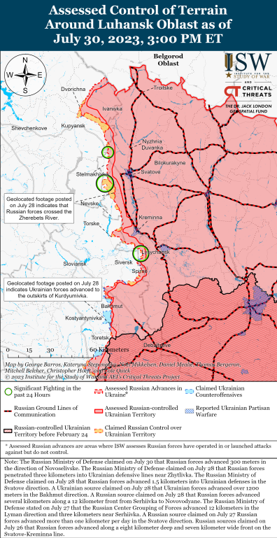 Хотя враг и продолжает наступать на линии Сватово-Кременная, подтвержденных успехов оккупанты не имеют. За минувшие сутки там произошло семь боевых столкновений.
