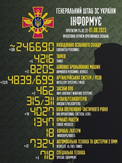 8:00 За сутки ВСУ уничтожили еще 500 оккупантов