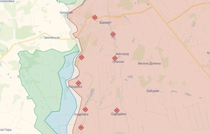 В то же время украинские военные продолжили наступление на Юге от Бахмута. Там же россияне предприняли безуспешные попытки восстановить утраченное положение западнее Курдюмовки, южнее Андреевки и западнее Клещеевки.