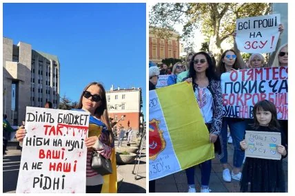 Также с требованием прежде всего направлять финансирование на ВСУ люди вышли к горсовету в Одессе. У них в руках плакаты: "Требую все средства на ВСУ, ремонты потом", "Стоп неадекватные тендеры, ВСУ в первую очередь". Люди скандируют: "Власть, услышь громаду" и "Деньги на ВСУ!", передает "Суспільне Одеса".