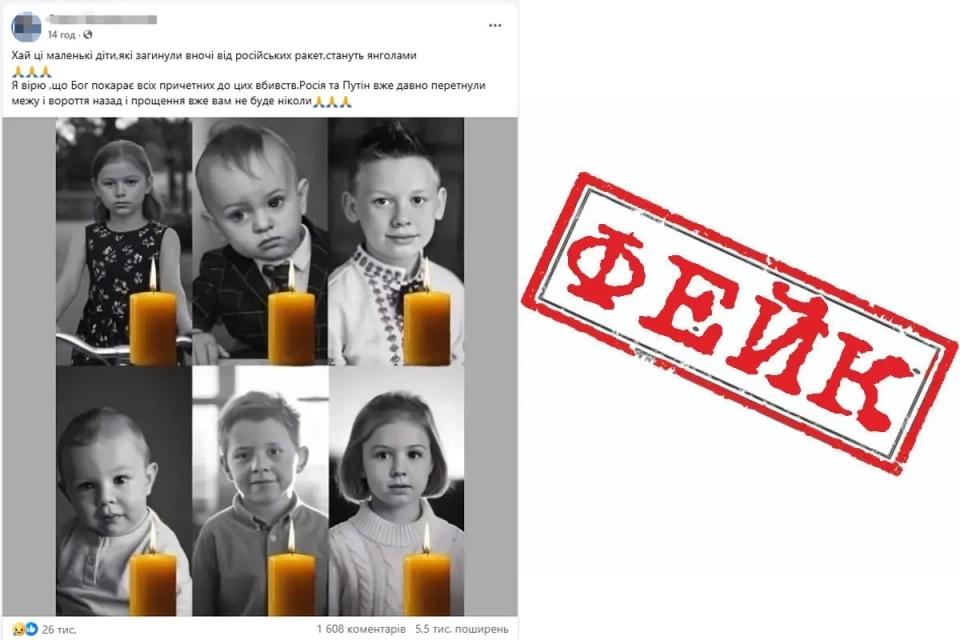В сети распространяют фейковые фото якобы погибших детей в результате атаки России на Тернополь со сбором средств. В городе из-за российского удара погибли три ребенка и 23 взрослых.