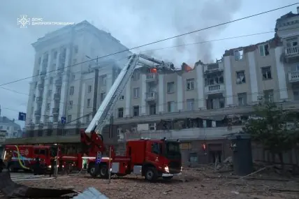В результате удара армии РФ по городу частично разрушены 2 верхних этажа жилой пятиэтажки в центре Днепра. Там продолжаются спасательно-поисковые работы.
