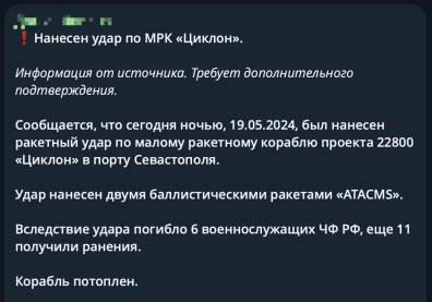 Днем 19 мая в ВСУ официально заявили, что потопили российский морской тральщик "Ковровец" в Крыму. Однако, судя по слухам, пораженное судно может оказаться еще "жирнее", чем предполагалось. Наши защитники уже проверяют информацию, но если это так, то ЧФ РФ мог получить еще больше ущерба.
