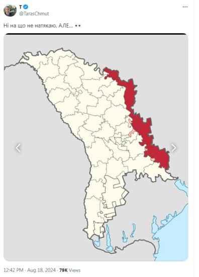 Руководитель фонда "Вернись живым" Тарас Чмут в соцсети X опубликовал карту, на которой изображена территория непризнанного Приднестровья. В подписи он добавил, что "ни на что не намекает". Следует отметить, что каких-либо других подробностей Чмут не сообщил.