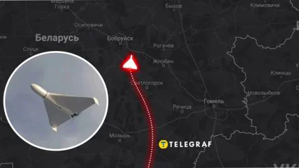 Об этом сообщает мониторинговая группа "Беларускі Гаюн". По их данным, российский БПЛА залетел в Ельский район Беларуси.