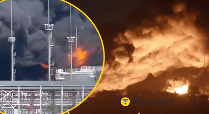 "Атлас" продолжает гореть: впечатляющее видео пожара на пораженной дроном нефтебазе