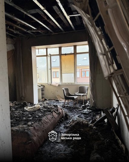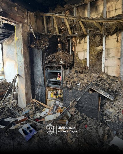 13:00 В запорожской мэрии показали, как выглядит сгоревшая квартира в Днепровском районе в результате вражеской атаки.