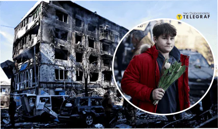 Фото последствий удара по Доброполью изрядно взволновали сеть. Особенно снимок молодого человека, который несет цветы на фоне разрушенного дома.