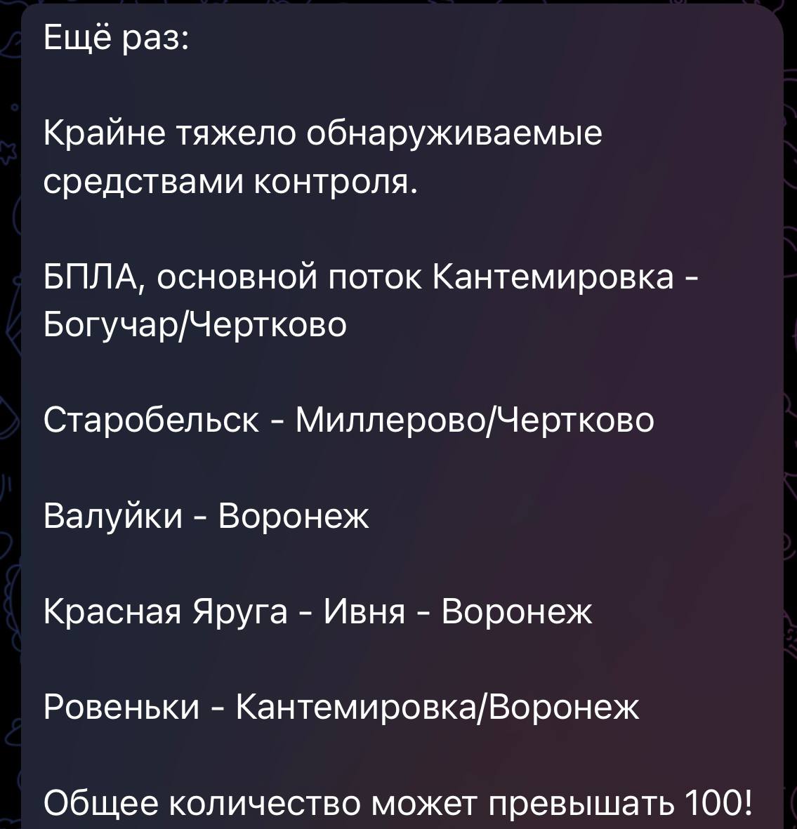 Об этом сообщают российские telegram-каналы. По их информации, в Белгородской, Воронежской, Брянской и Курской областях уже были зафиксированы пролеты нескольких из них.