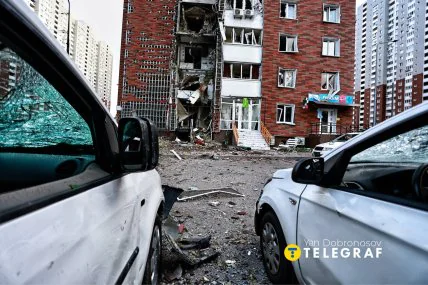- В Оболонском районе обломки БПЛА упали на территорию одной из школ. Возник пожар в жилом массиве, горела аптека. Также возник пожар в нежилом здании. Госпитализировали одного пострадавшего