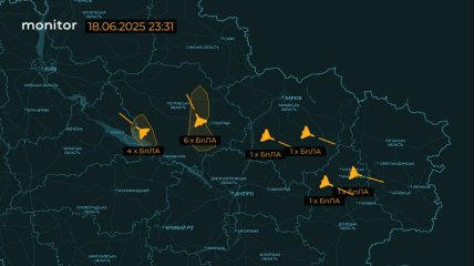 08:30 В ночь на 19 июня россияне нанесли по Украине 104 удара дронами типа "шахед", а также имитаторами. Успешно уничтожены 88 целей, из которых 48 — подавлены средствами РЭБ. Как отметили в Воздушных Силах, есть попадания в шести разных локациях.