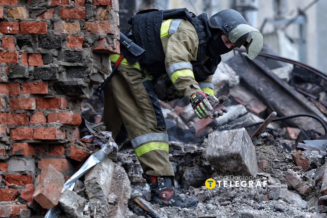 Спасатели отметили, что в результате удара были разрушены два подъезда пятиэтажного жилого дома, возник пожар.