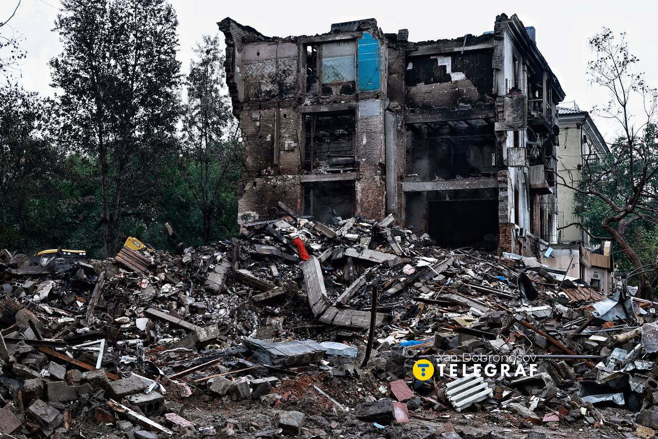 В горсовете обратили внимание, что россияне атаковали густонаселенный центр города. Везде заметны обломки и личные вещи жителей. Завалов на этой локации очень много.