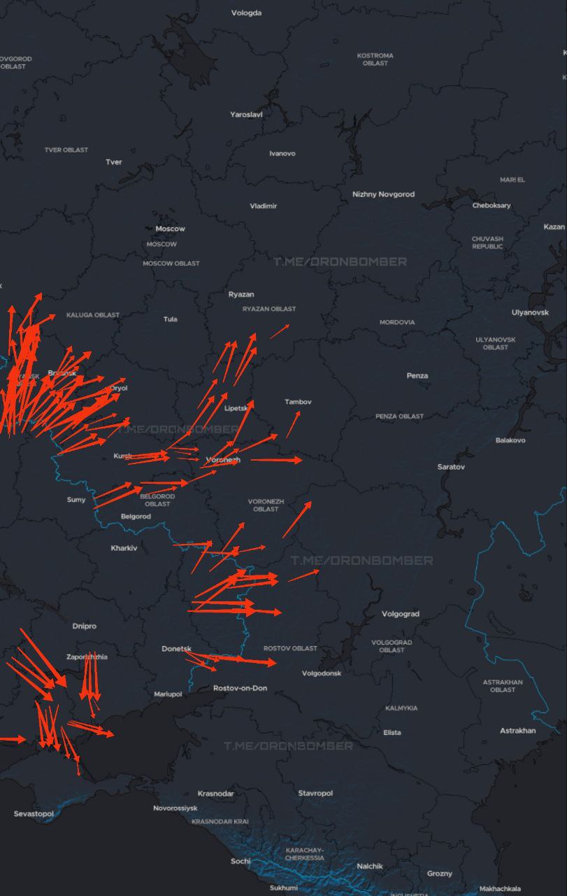05:00 В украинском воздушном пространстве нет ни одного вражеского ударного беспилотника. В России же всю ночь было очень "весело".