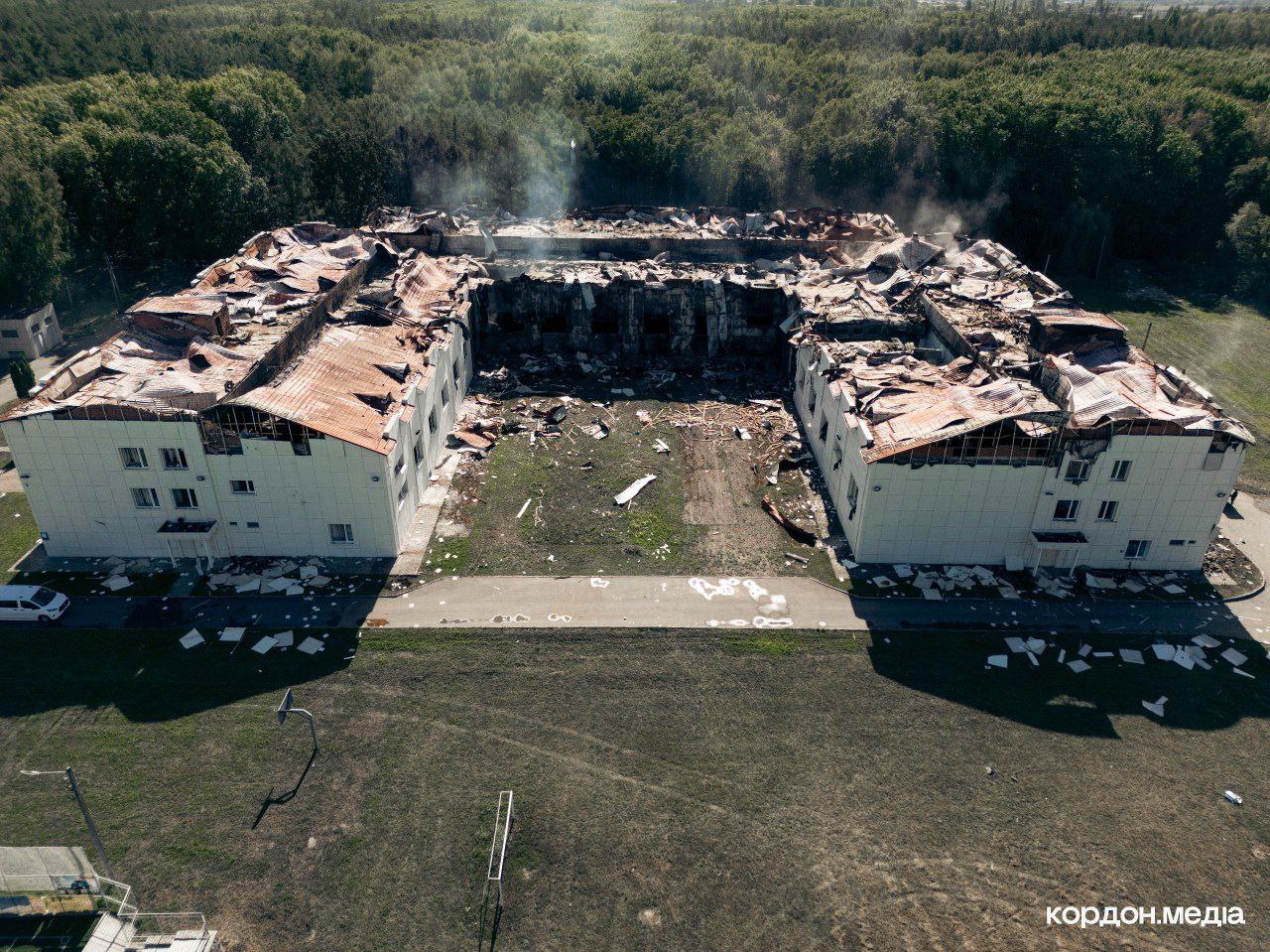 12:00 РФ сегодня ночью уничтожила учебное заведение в Сумах. На фото показано, как выглядит сейчас один из корпусов СумГУ с высоты — здание полностью разрушено.