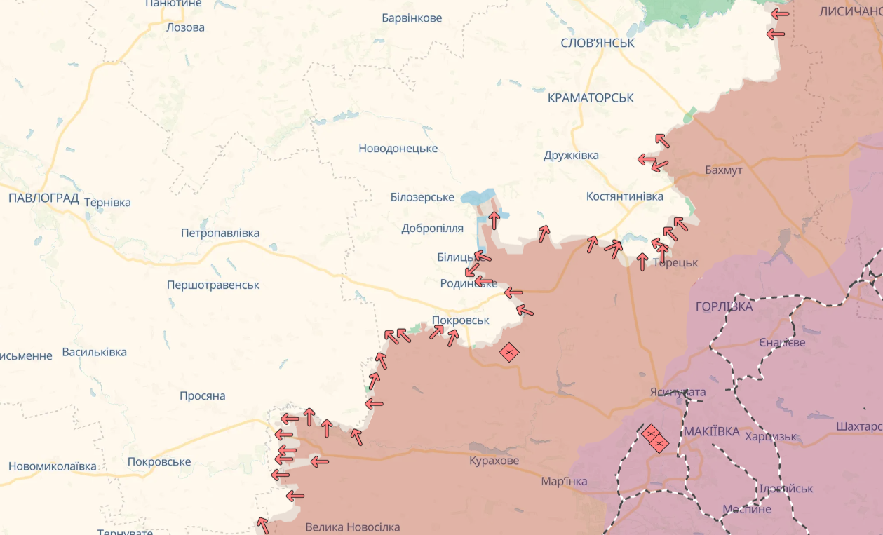 Карта боевых действий в Украине от DeepState по состоянию на начало суток выглядит следующим образом: