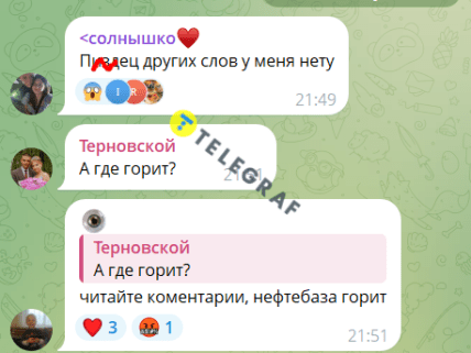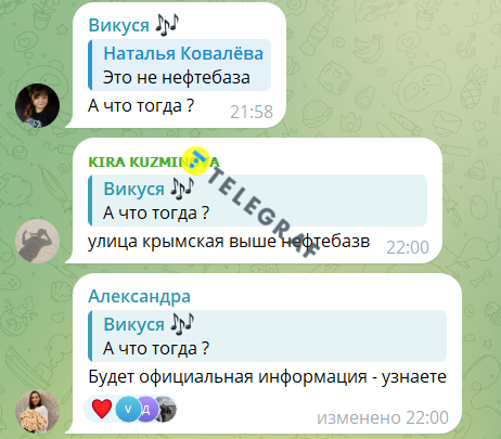 В комментариях люди спорят, что именно горит – нефтебаза или другой объект, который "будет взрываться еще долго". Также интернет-пользователи напоминают, что оккупационная администрация запретила выкладывать фото и видео последствий прилетов в сети.