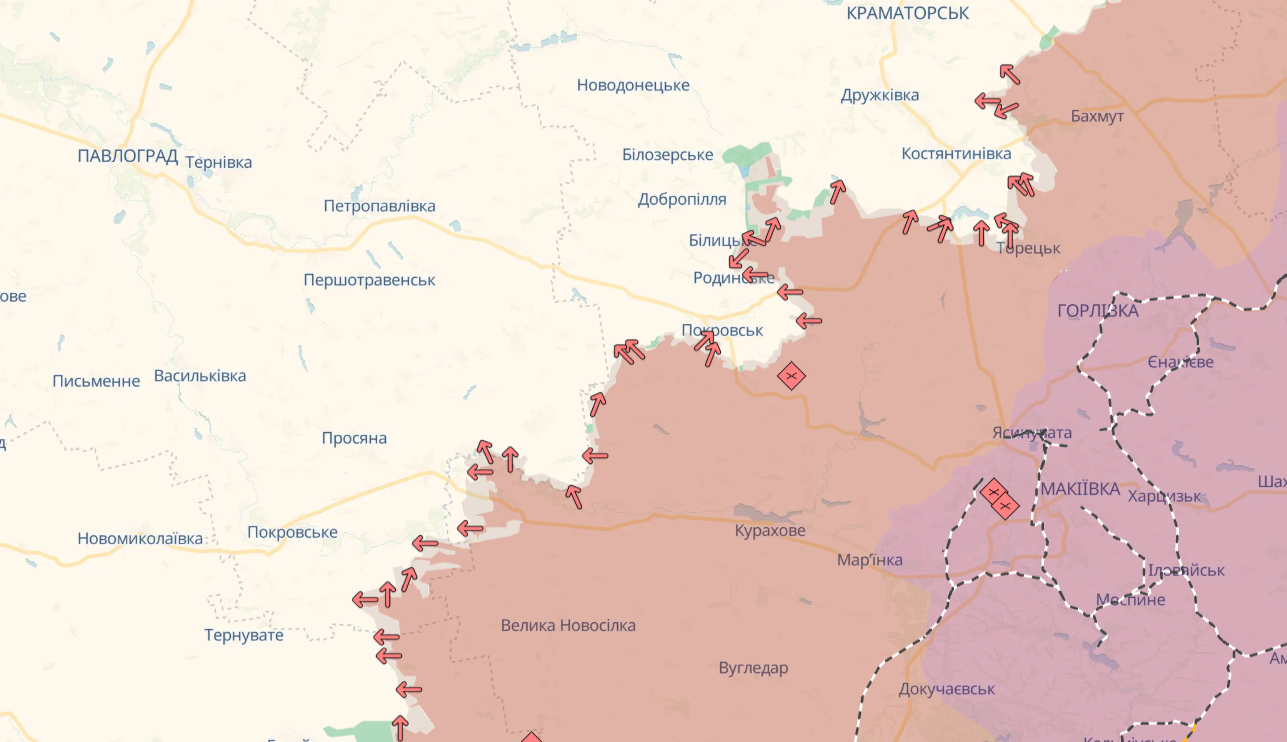 Тем временем карты боевых действий от DeepState по состоянию на начало суток выглядят следующим образом: