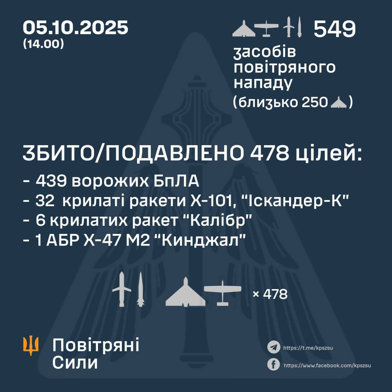 - 439 враждебных БпЛА типа Shahed, Гербер (беспилотники других типов);