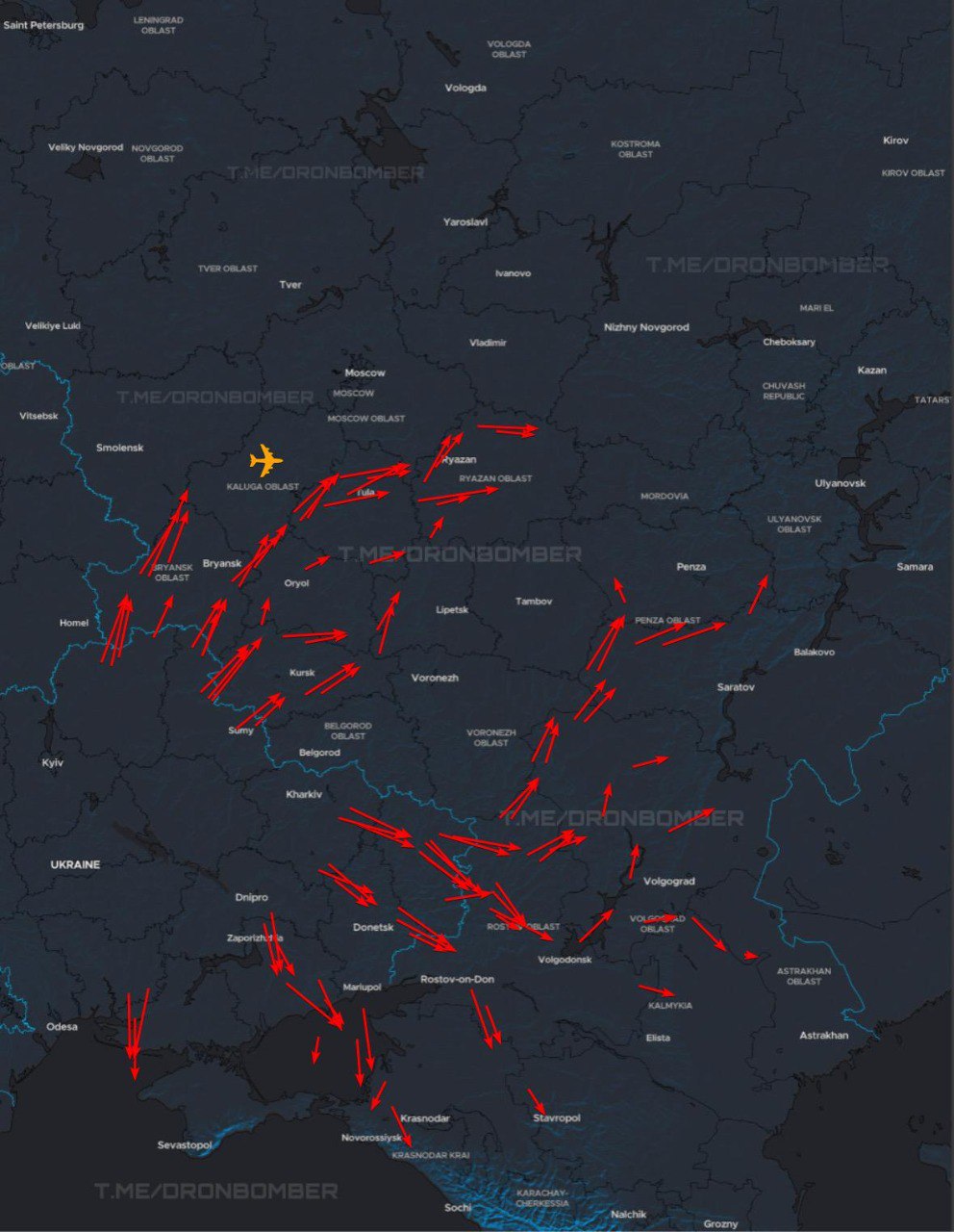 00:00 Маршруты украинских БПЛА, летящих атаковать военные и инфраструктурные объекты в России и на оккупированных территориях. В аэропорту Калуги объявлен план "Ковер".
